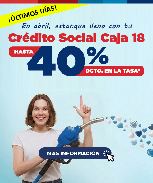 Caja 18 Trabajadores Beneficios y DescuentosDescuentosBeneficios por Región Salud y Licencias MédicasLicencias MédicasConsulta Pago LicenciasReembolso Gastos Médicos Ambulatorios EducaciónBono EscolarBono Educación SuperiorBono Mejor Puntaje PAESResultados postulaciones Recreación y TurismoCentro Recreacional CerrillosClub de Campo Don Elías FigueroaTurismo CréditosCrédito Socialconsulta Crédito preaprobadoSimula tu crédito socialCrédito UniversalReprogramación en líneaPortabilidad FinancieraPago en línea Crédito SocialDevolución por Pagos en ExcesoEducación Financiera SegurosSeguro de CesantíaSeguro de Desgravamen Apoyo FamiliarBonos SocialesAsignaciones FamiliaresActualización online de cargas Pensionados Beneficios SaludDescuentos en SaludOperativos de Salud CréditosCrédito SocialConsulta Crédito preaprobadoSimule su crédito socialCrédito universalPortabilidad FinancieraPensión Básica SolidariaReprogramación en líneaPago en línea crédito socialDevolución por Pagos en ExcesoEducación Financiera Recreación y TurismoCentros RecreacionalesTurismo EducaciónBono EscolarBono Educación SuperiorBono Mejor Puntaje PAESResultado Postulaciones Bonos Sociales Puntos DoradosQué son los Puntos DoradosCómo canjear los Puntos DoradosCómo acumular Puntos DoradosPreguntas FrecuentesConsulta Puntos Dorados Empresas Afiliación¿Cómo afiliarse?¿Por qué Afiliarse?Cómo operar con Caja 18 Beneficios Licencias Médicas Apoyo FamiliarBonos SocialesAsignaciones FamiliaresActualización Online de Cargas Descarga Solicitudes y Reglamentos CréditosCrédito Socialconsulta crédito preaprobadosimulador crédito socialCrédito UniversalPortabilidad FinancieraDevolución por Pagos en Exceso ASESORÍA EMPLEO Y CAPACITACION