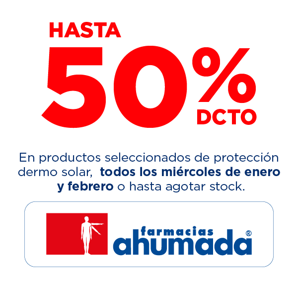 Beneficio exclusivo para afiliados a Caja 18 e inscritos en el programa “Ahumada Contigo” de Farmacias Ahumada SpA, consistente en hasta un 50% de descuento en la compra de productos seleccionados de dermocosmética de las marcas: Avene, Eucerin, Isdin, Uriage, VN, Loreal, Leblon, Australian Gold, Emolan, Rayito de Sol, Petrizzio, Neutrogena, Simonds, Dermocream, Banana Boat, Hawaiian Tropic, La Roche Posay, Vichy, Suncare 100, Solactive y Sunwork. El descuento aplica únicamente por una compra presencial por rut de hasta 3 productos por Beneficiario, únicamente en compras presenciales, realizadas sólo los días miércoles de enero y febrero de 2026 o hasta agotar stock de 1.000 productos. La inscripción en el programa “Ahumada contigo” podrá realizarse en el sitio web de Farmacias Ahumada o de forma presencial, previo a la compra, en cualquiera de los locales de Farmacias Ahumada a lo largo de Chile. Descuento no acumulable a otras ofertas, promociones y descuentos, válido solo para productos que se encuentran dentro del catálogo de productos del programa Ahumada Contigo, disponible en www.farmaciasahumada.cl. El otorgamiento del descuento es responsabilidad exclusiva de Farmacias Ahumada. Más información sobre el Beneficio en nuestro sitio web www.caja18.cl o Call Center 600 718 1818. Otorgamiento del crédito social sujeto a la política de crédito vigente y capacidad de endeudamiento del afiliado a Caja 18 a la fecha de su solicitud. Mayor información sobre documentos requeridos, requisitos y condiciones en sucursales de Caja 18, a través de nuestro sitio web www.caja18.cl, o llamando al Call Center 600 718 18 18 y Reglamento de Crédito Social. Las Cajas de Compensación son fiscalizadas por la Superintendencia de Seguridad Social (www.suseso.cl).