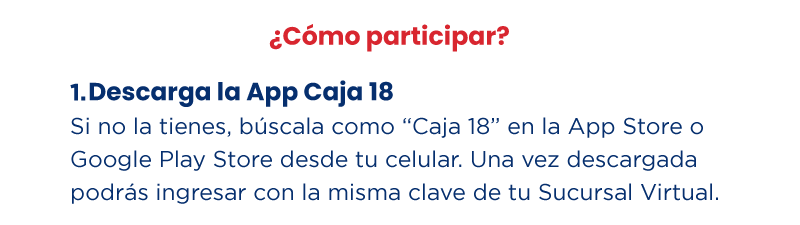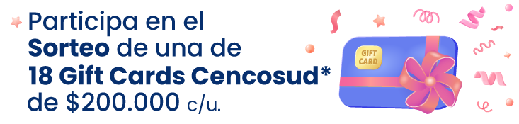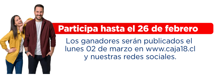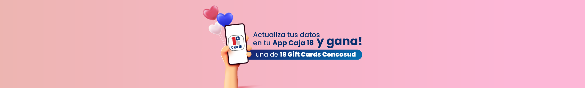 Beneficio exclusivo para trabajadores y pensionados afiliados a Caja 18 consistente en *18 (dieciocho) Gift Cards Cencosud de $200.000 (doscientos mil pesos) cada una, que serán sorteadas entre los afiliados participantes que descarguen la Aplicación Móvil de Caja 18 desde App Store o Google Play, o ingresen a ella si ya se encuentra descargada, y que actualicen o confirmen sus datos personales a través de dicha aplicación, entre el 02 y el 26 de febrero de 2026, ambas fechas inclusive. El sorteo se realizará el 27 de febrero de 2026. Las Gift Cards podrán utilizarse hasta el 29 de enero de 2027, en compras presenciales en tiendas Paris, Jumbo, Easy, Santa Isabel, Spid, Umbrale, American Eagle y Women’secret a lo largo de Chile, y en compras online en Paris, Jumbo y Santa Isabel. El Beneficio no es canjeable por dinero en efectivo ni por otros bienes. Más información sobre requisitos de participación, condiciones del sorteo y entrega del Beneficio en las Bases de la Prestación Adicional “En el mes del amor; Caja 18 te apoya con tus compras”, el Reglamento del Régimen de Prestaciones Adicionales y el Programa Anual de Prestaciones Adicionales 2026, disponibles en www.caja18.cl y en sucursales de Caja 18. Las Cajas de Compensación son fiscalizadas por la Superintendencia de Seguridad Social (www.suseso.cl)